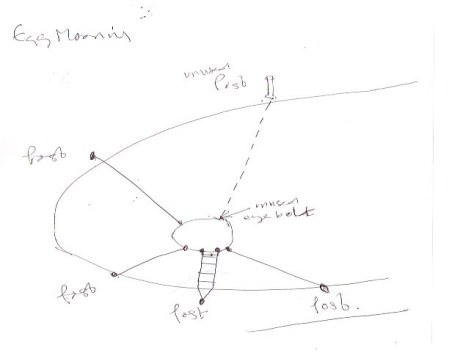 The Egg is only afloat for about five hours in twenty four and this, combined with an aerodynamic shape, very sheltered position and secure mooring (though I may need another rope along the dotted line below) allowed it to comfortably ride out the storm.