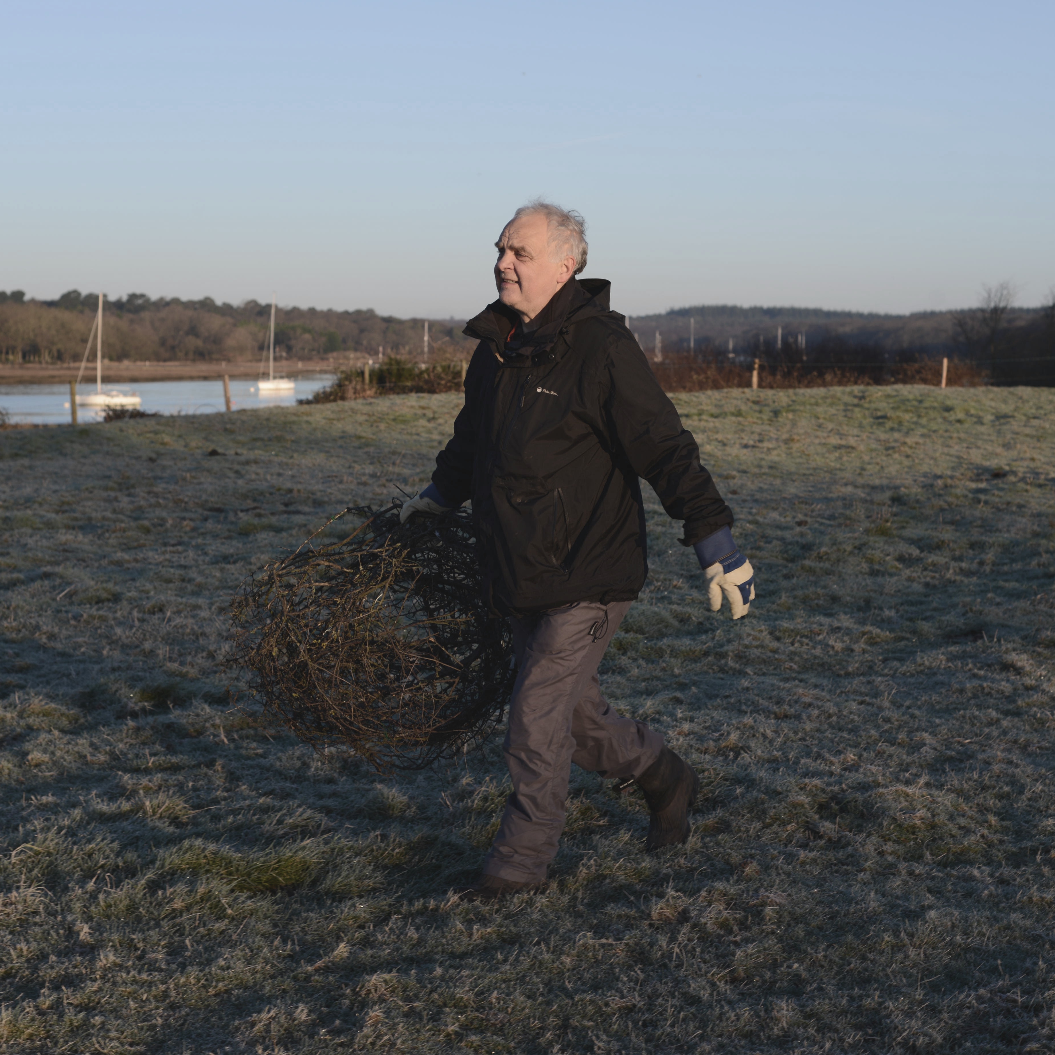 I placed an egg of woven blackthorn in the thicket from which its twigs and small branches originally came. It is held together with ties of twine and will soon be slowly absorbed into the dense new growth of Springtime. Its spiny exterior surface and hollowed core, offers natural protection to the small nesting birds which make their home here. I will document the changes as days pass into weeks, as part of a meditation on the nature of habitats and the important symbolism of the Egg.