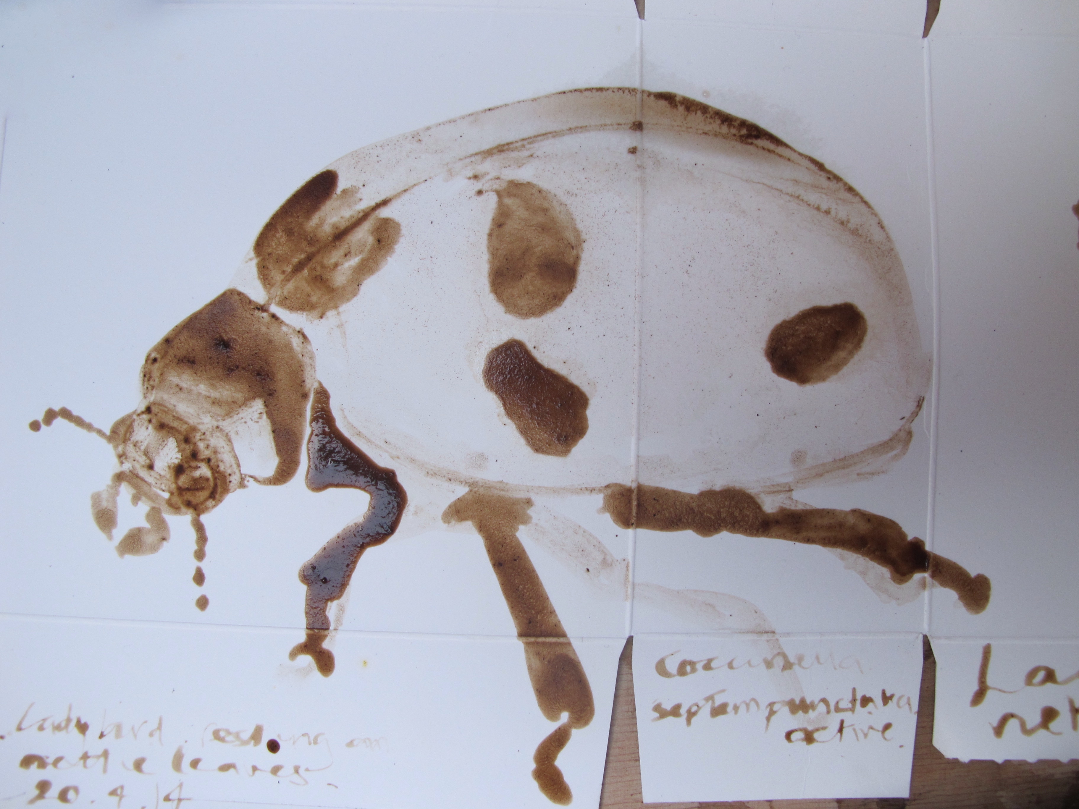 Many ladybirds were nestling in the nettle tops yesterday morning, including a pair of the scarlet and black seven spot sort.