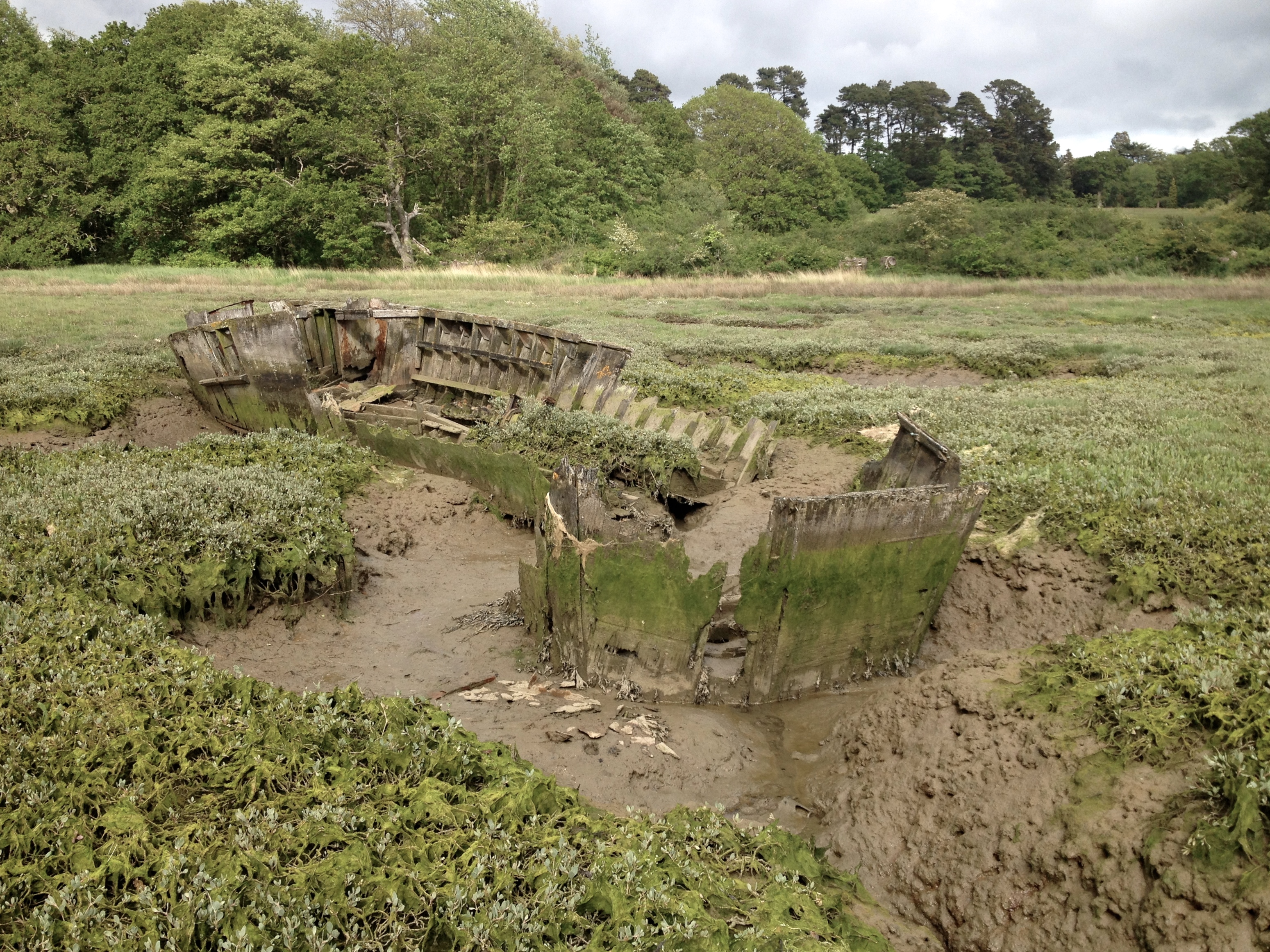 The decayed wooden hulk of the supply boat @ 50º47’54.53″ N & 1º24’33.35″ W, dates from the later days of the second world war and it is slowly returning to the (soggy) earth from which its timbers originally sprang. Every day adds a story to its seventy year long narrative, as here, in my own parish, the wooden walls of the Egg begin their own journey.