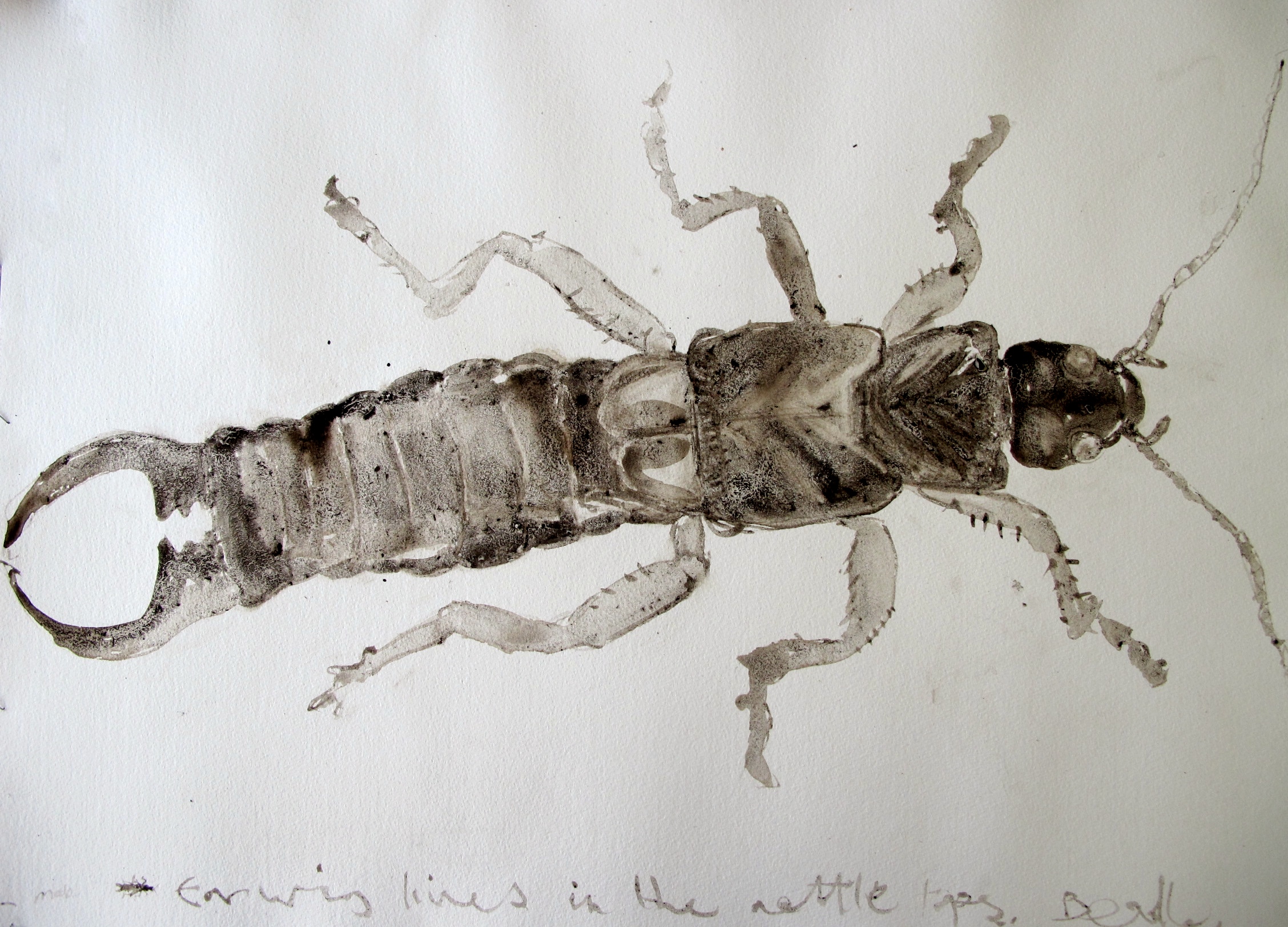 The swallows were a welcome sight last night as a trio of new arrivals dipped and darted low across the pasture of my neighbouring field looking for food. I yelled the news up the hill to my neighbour Nick, who later saw around twenty five in the field about his house. They were hard to photograph in the dull cloudy light, but I made some studies in ink.