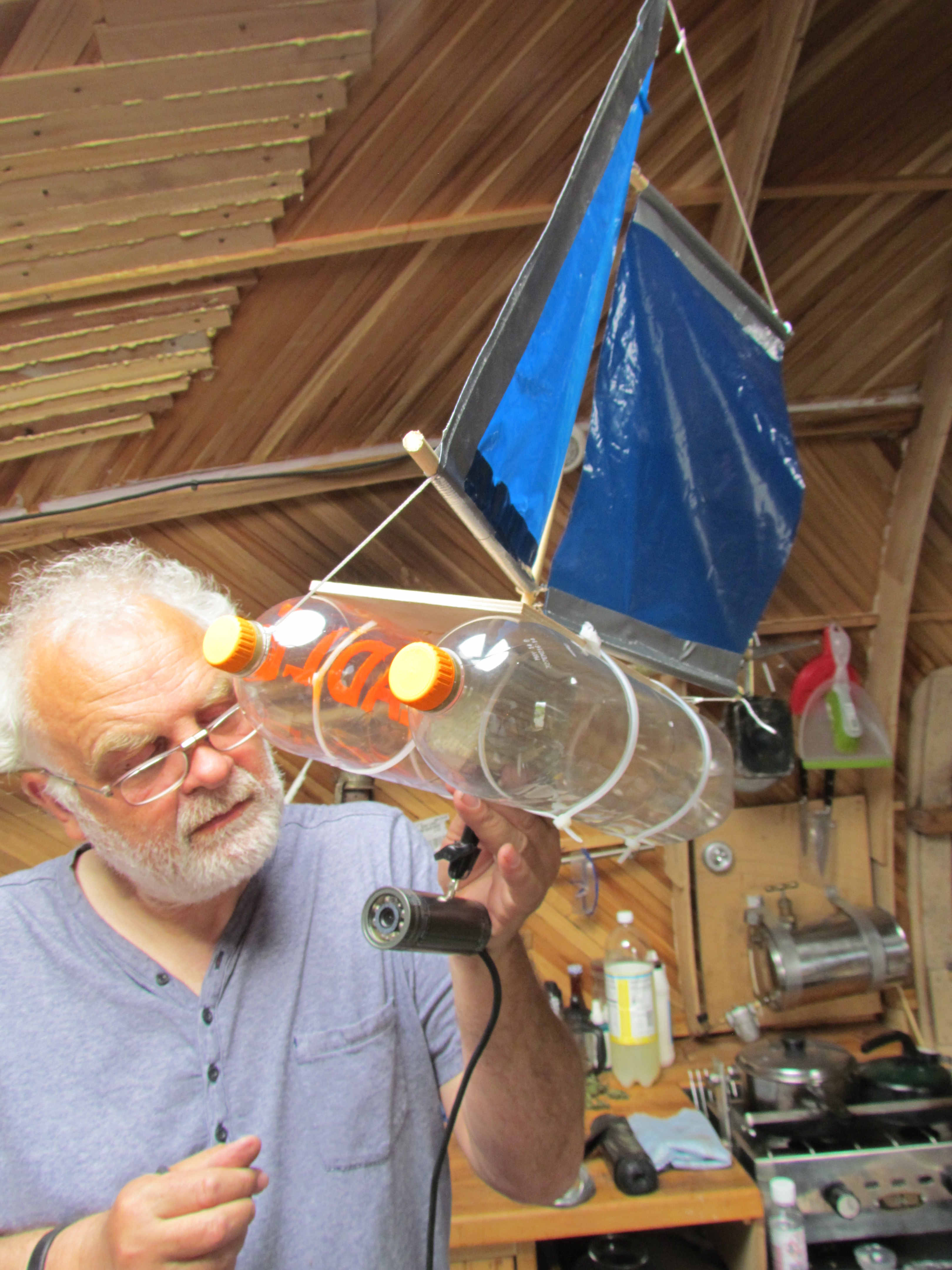 IMG_9683Fashion student (now graduate) Sue Carley made me a pair of DIY jeans from unbleached cotton – Dye It Yourself. A small oak ‘bush’ beside the Egg (behind me in the photo) provided galls to create the dye and its individual  leaves the templates for a pattern (drawn in hot wax then ironed out). An oak T shirt completed the ensemble. A full scale drawing of the trousers uses watercolour from the same source.
