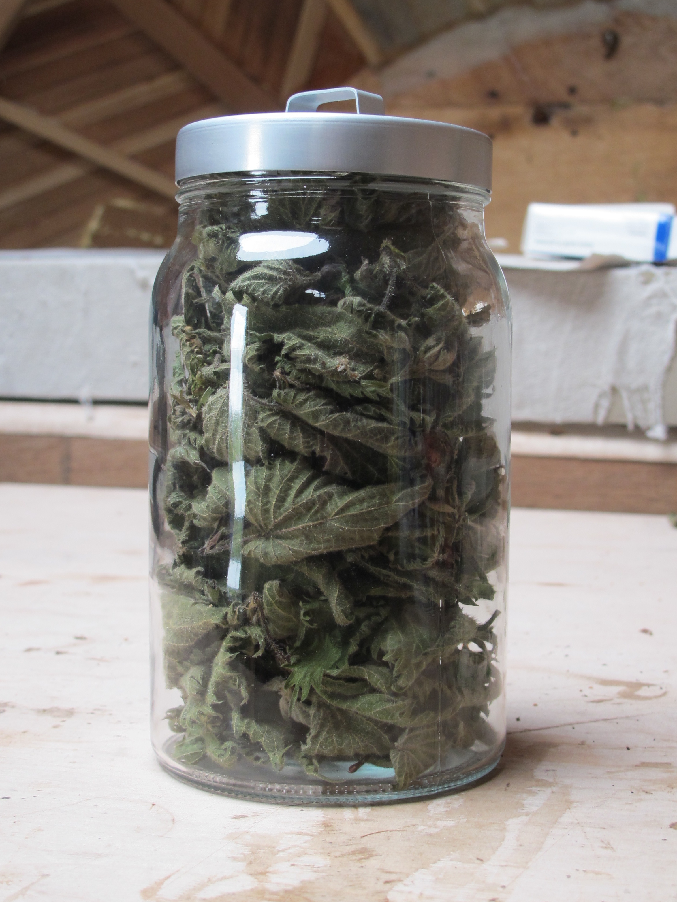 Stinging Nettles are growing in huge profusion beside the Bofors Gun emplacement, which is itself slowly disappearing behind their dense metre high growth. The leaves make a refreshing green tea.