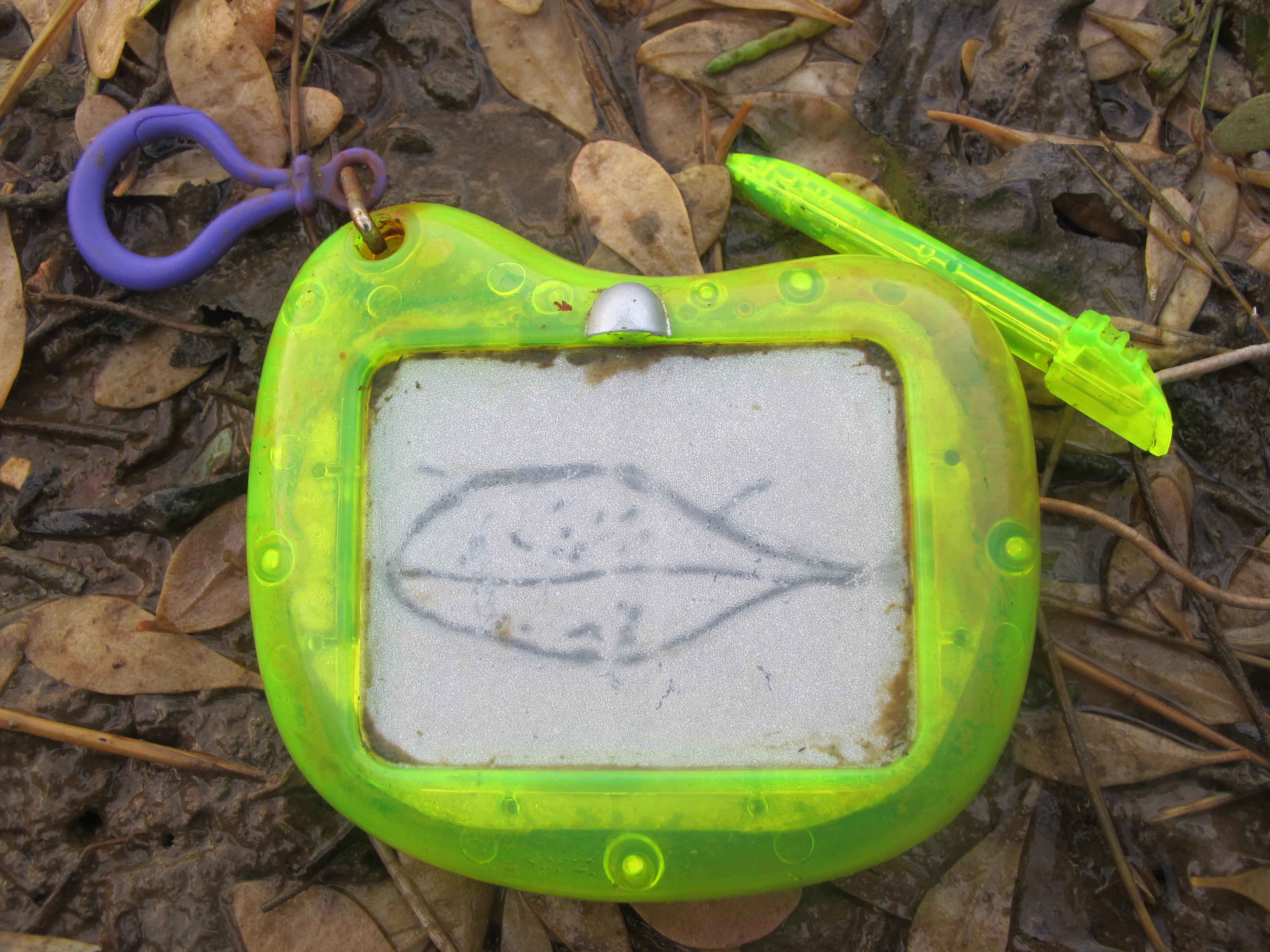 A high spring tide washed over the sea purslane last night, carrying away dead leaves and laying their pale ochre, khaki and wan russet tints over deeper notes of mud. A discord of florescent yellow (N 50˚47.151′ W 001˚ 24.478′), turned out to be a small hand held drawing tool, which still functioned when tested.
